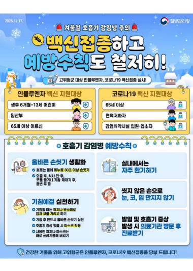 호흡기 감염병은 기침이나 재채기 등을 통해 발생하며 비말로 전파되어 발열·기침·인후통·근육통 등의 증상을 동반한다. 특히 고령자, 어린이, 임신부, 만성질환자 등 고위험군의 경우 중증으로 진행될 수 있어 각별한 주의가 필요하다.