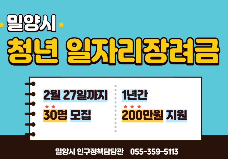 지원 자격은 밀양시에 주소를 둔 18세 이상 39세 이하 청년으로, 2025년 1월 1일 이후 관내 소재 기업체(상시 근로자 3인 이상)에 정규직으로 취업하거나 전환된 근로자다.