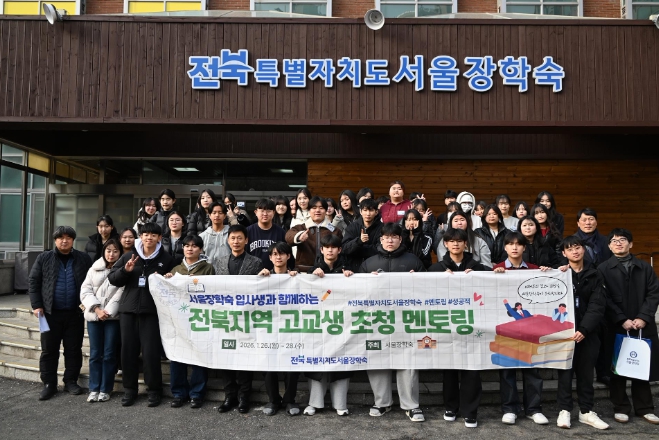 [뉴스노크=김인호 기자] 전북특별자치도서울장학숙(관장 강길동)은 2026년 1월 26일부터 1월 28일까지 3일간 도내 14개 시․군 고교생 21명(1학년 남 8명, 여 13명)을 서울장학숙으로 초청, 입사생과 함께 숙박하며 '선후배와의 만남' 멘토링 행사를 진행한다.