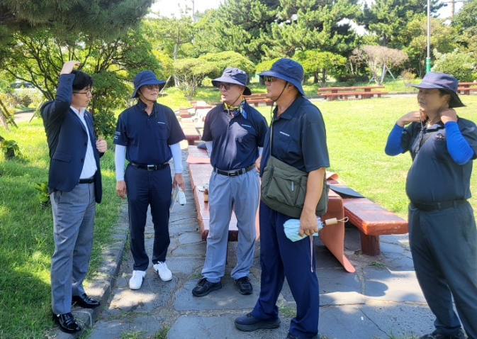 특히, 불법드론 감시단(하늘지킴이) 활동 중인 참여자들과 직접 만나 물 마시기, 그늘 이용, 충분한 휴식 실천 등 혹서기 3대 수칙을 강조하며, 폭염 시 활동 강도 조절과 건강관리에 각별한 주의를 당부했다.