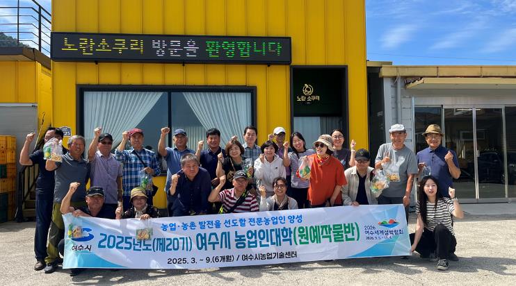 [뉴스노크=김인호 기자] 여수시는 지역농업 경쟁력을 높이고 전문 농업경영인을 육성하기 위해 ‘2026년도 여수시 농업인대학’ 신입생을 오는 27일까지 모집한다고 밝혔다.