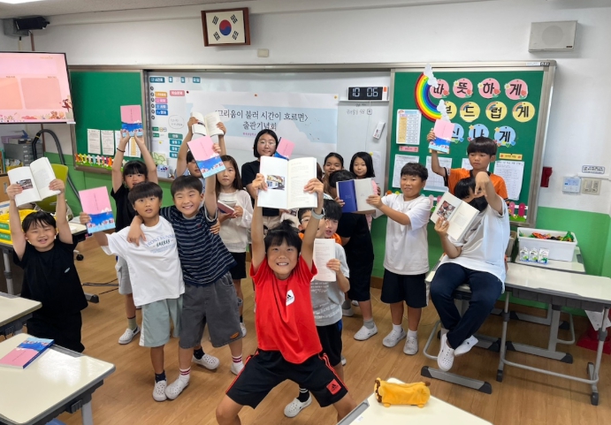 ▲ 4학년 학생들의 창작집 ‘그리움이 불러 시간이 흐르면’ 출판기념회 |