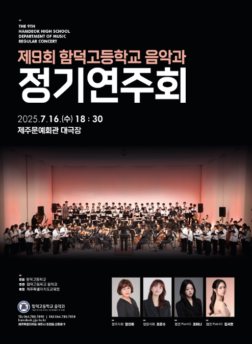 [뉴스노크=김인호 기자] 제주도교육청 함덕고등학교는 오는 16일 오후 6시 30분 제주도문예회관 대극장에서 ‘제9회 음악과 정기연주회’를 개최한다.