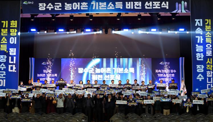 [뉴스노크=김인호 기자] 장수군은 8일 한누리전당 산디관에서 ‘농어촌 기본소득 비전 선포식’ 행사가 성황리에 개최됐다고 밝혔다.