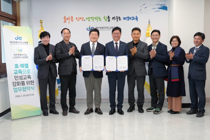 [뉴스노크=김인호 기자] 제주특별자치도교육청은 20일 제주특별자치도노인복지시설협회와 ‘효·예절 교육으로 인성교육 강화를 위한 업무협약’을 체결했다.