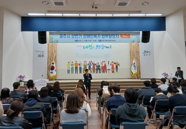 [뉴스노크=김인호 기자] 제주시는 2월 27일 시청 1별관 회의실에서 시·읍면동 장애인복지 담당 공무원 50여 명을 대상으로 ‘상반기 장애인복지 업무 담당자 워크숍’을 개최했다.