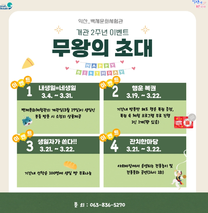 | ▲ 익산 백제문화체험관, 개관 2주년 특별 이벤트 |