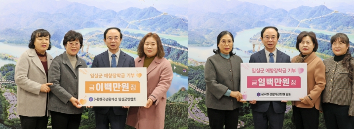 (사)생활개선임실군연합회(회장 정현옥)에서 2백만원을, 성수면 생활개선회(회장 정옥순)에서 1백만원의 애향장학금을 기부했다.