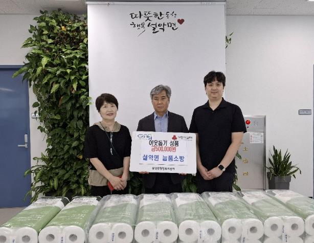 [뉴스노크=김인호 기자] 가평군 설악면 늘품소방 김영호 대표는 22일 설악면행정복지센터를 찾아 관내 호우 피해 가정을 위한 후원 물품으로 50만원 상당의 휴지를 기탁했다. 이 물품은 최근 지급된 민생회복 소비쿠폰을 활용해 직접 구입한 것이다.