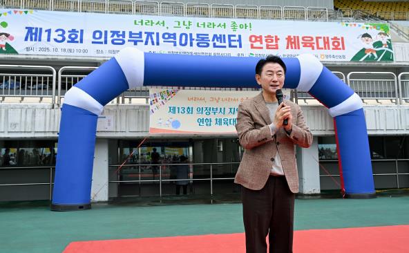 | ▲ 김동근 시장이 10월 18일 ‘제13회 의정부시 지역아동센터 연합체육대회’에서 인사말을 하고 있다. |