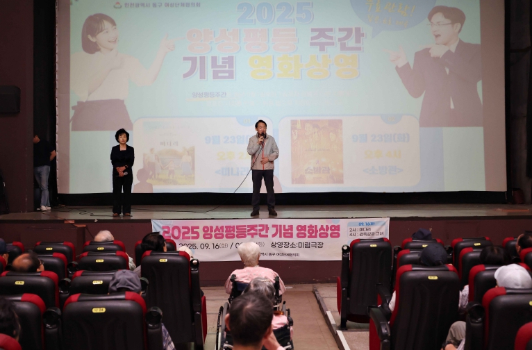 [뉴스노크=김인호 기자] 인천 동구는 2025년 양성평등주간을 맞아 지난 16일, 23일 미림극장에서 ‘양성평등주간 기념’ 영화 상영을 성황리 마무리했다고 밝혔다.