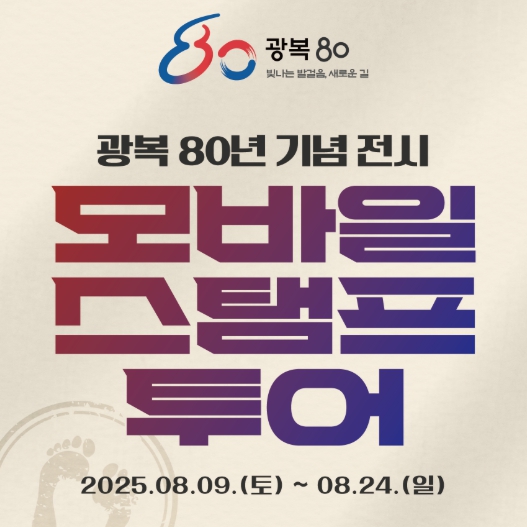 광복 80년 기념사업 추진기획단 박상철 단장은 “이번 스탬프 투어를 통해 광복 80년 기념 전시를 더 많은 국민이 관람하기를 바란다”면서, “이번 이벤트를 통해 광복 80년의 의미를 느껴보는 시간이 되기를 기대한다”라고 밝혔다.