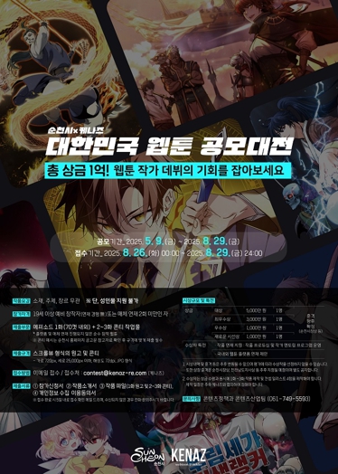 ▲ 순천시×케나즈, ‘2025 대한민국 웹툰 공모대전’ 총상금 1억 원! |