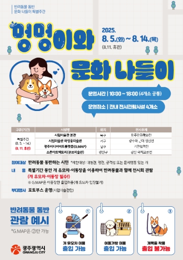 [뉴스노크=김인호 기자] 광주광역시는 오는 8월 5일부터 14일까지(휴관일 11일 제외) ‘반려동물 동반 문화나들이 특별주간’을 운영한다.