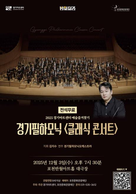 [뉴스노크=김인호 기자] 포천문화관광재단은 오는 12월 3일 포천반월아트홀 대극장에서 경기필하모닉 ‘클래식 콘서트’를 개최한다.