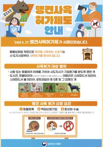 맹견사육허가제는 2024년 4월 27일부터 시행됐으며, 계도기간은 2025년 10월 26일까지다.