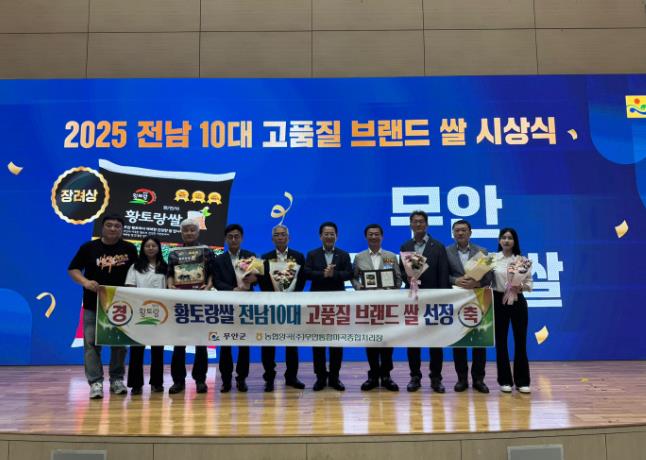 [뉴스노크=김인호 기자] 전남 무안군은 지난 30일 전라남도청 왕인실에서 열린 전남 10대 고품질 브랜드쌀 시상식에서 무안 ‘황토랑쌀’이 장려상을 수상, 16년 연속 총 18회 선정이라는 기록을 세워 무안 쌀의 명성과 품질 경쟁력을 다시 한번 입증했다.