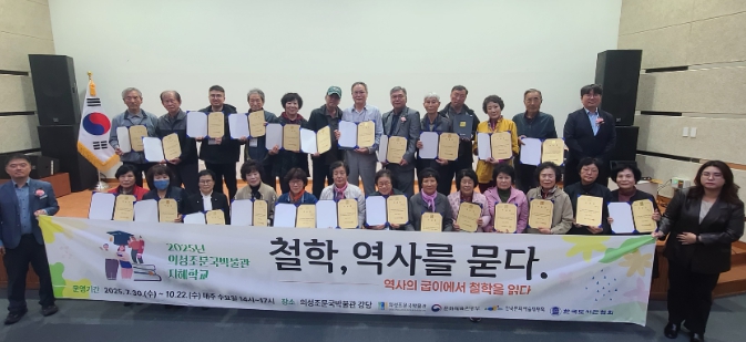 [뉴스노크=김인호 기자] 의성군은 10월 22일 문화체육관광부와 한국문화예술위원회가 주관하는 2025년 ‘지혜학교’ 프로그램의 마지막 강연 및 수료식을 의성조문국박물관 강당에서 성공적으로 마쳤다고 밝혔다.