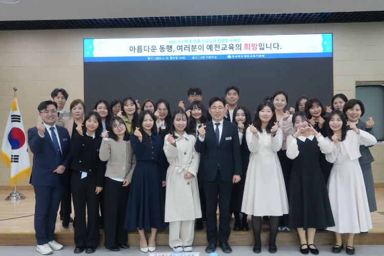 김성중 교육장은 “행복한 교직의 첫걸음을 예천에서 시작하게 됨을 진심으로 축하하며, 아이들과 선생님의 아름다운 동행을 통해 따뜻한 예천교육의 미래를 함께 열어가길 바란다.”라며, “교직을 시작하는 오늘의 다짐을 늘 가슴에 새기고, 사랑과 정성으로 아이들을 가르치는 따뜻한 참 스승으로 성정하길 바란다.”고 말했다.