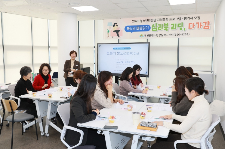 [뉴스노크=김인호 기자] 예천군은 15일부터 매주 목요일, 학부모의 마음 건강 증진과 위기청소년 조기 발견을 위한 '목요일 마음읽기 – 심리북 리딩, 다가감(茶加感)' 프로그램을 운영한다고 밝혔다.