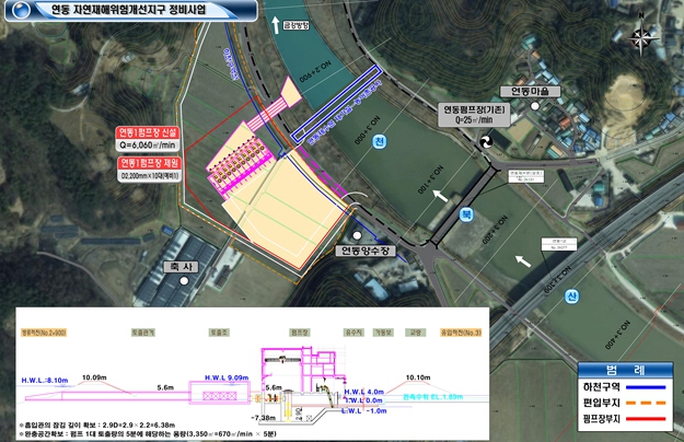 주요 내용은 분당 6,060㎥ 규모의 대형 배수펌프장을 신설해 배수 기반시설을 확충하는 것이다.