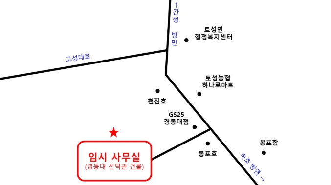 임시사무실는 경동대학교 글로벌캠퍼스 선덕관 2층에 위치하며, 기존 전화번호 및 팩스 번호는 변동 없이 유지된다.