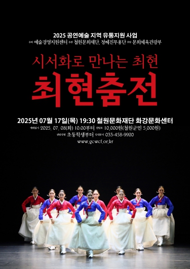 [뉴스노크=김인호 기자] 철원문화재단은 예술경영지원센터 ‘2025 공연예술 지역 유통지원 사업’공모 사업에 선정된 '시서화로 만나는 최현' 무용극 공연을 오는 7월 17일 목요일 19시 30분 화강문화센터에서 공연한다.
