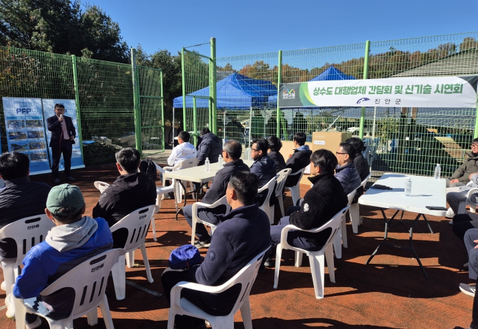 [뉴스노크=김인호 기자] 진안군은 지난 11일 산약초 타운에서 관내 상하수도 대행업체 대표 및 실무자, 상하수도과 관계자 등 50여명이 참석한 가운데 ‘상하수도 대행업체 간담회 및 신기술 시연회’를 개최했다.
