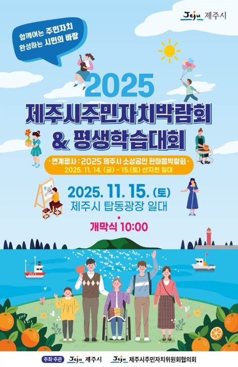 [뉴스노크=김인호 기자] 제주시는 11월 14일부터 15일까지 산지천과 탑동광장 일대에서 ‘2025 제주시 소상공인 한마음 박람회’와 ‘주민자치박람회 & 평생학습대회’를 연계해 개최한다.