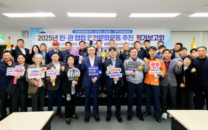 [뉴스노크=김인호 기자] 서귀포시는 12월 19일 10시 시청 별관 4층 별넷마당에서 오순문 서귀포시장을 비롯해 교육지원청‧경찰서‧자치경찰단‧소방서‧해양경찰서 등 유관기관장과 오창훈 시 주민자치위원회협의회장, 시민사회단체장 등 안전문화운동추진 서귀포시협의회 위원 30여 명이 참석한 가운데 ‘2025년도 민‧관협업 안전문화운동 추진 평가보고회’를 개최했다.