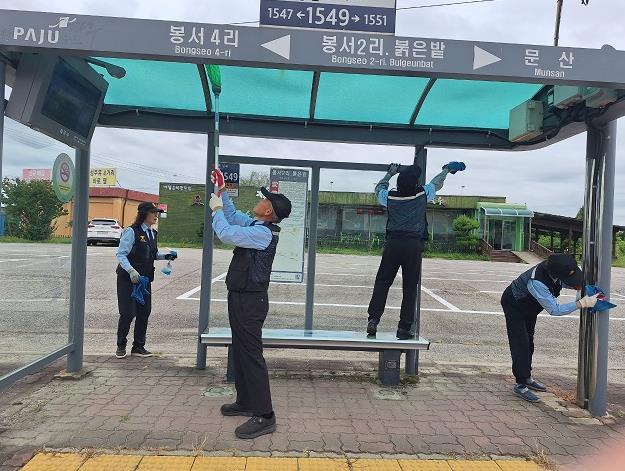 ▲ 파주읍 실버경찰대,‘추석맞이 버스승강장 대청소’활동 펼쳐 |