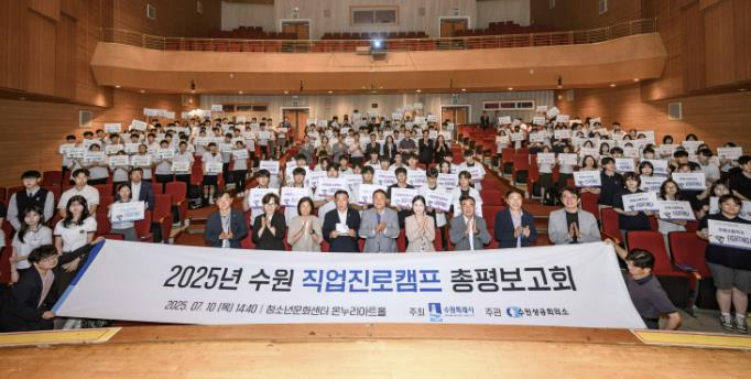 [뉴스노크=김인호 기자] 수원시는 10일 수원청소년문화센터 온누리아트홀에서 ‘2025 직업계고 직업진로캠프 총평보고회’를 열고, 직업계고·일반고 취업희망 학생들의 진로 설계 성과를 공유했다.