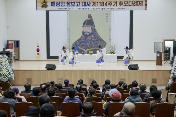(사)장보고연구회가 주최하고 완도군이 후원하는 ‘장보고 대사 추모 다례제’는 1,200년 전 완도에 청해진을 설치하고 ‘바다를 지배하는 자가 세계를 지배한다’는 정신으로 동북아 해상 무역을 이끌었던 장보고 대사의 업적과 도전 정신을 기리기 위해 2005년부터 매년 11월 18일에 열리는 제례 의식이다.