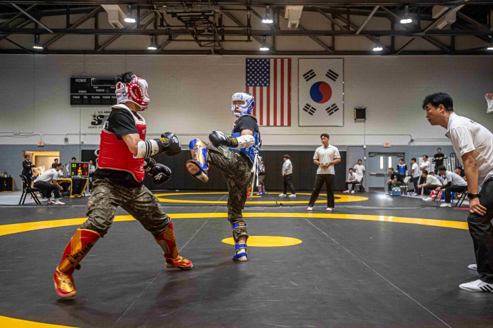 ▲ 지난 2023년 7월 개최한 ‘2023 한미친선 전군 태권도 경연대회’에서 참가 선수들이 전투 태권도 겨루기를 하는 모습 |