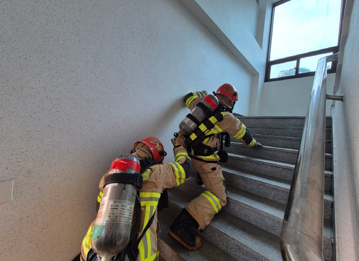 훈련은 △밀폐·고열 상황에서의 공기호흡기 관리 △의식 불명 소방관 구조 절차 △로프를 활용한 인명 인양 △팀 단위 수색·구조 기술 등 실전 중심 프로그램으로 진행됐다. 특히 대원 개개인의 기술 숙달뿐만 아니라 팀워크와 의사소통 능력을 높이는 데 중점을 두어 실제 현장에 준하는 긴장감을 조성했다.