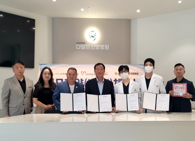 이번 협약은 자원봉사자들의 헌신에 대한 감사와 건강증진을 위해 마련된 것으로, 서산 365 다담은 한방병원에서는 비급여 과목과 한약조제 등에 15% 할인 혜택을 제공하는 ‘할인가맹점’으로 등록함으로써 이를 통해 지역사회 발전에 기여하는 우수 봉사자들이 실질적인 혜택을 누릴 수 있게 됐다.