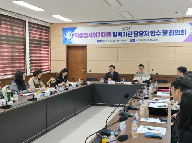 [뉴스노크=김인호 기자] 충청남도서산교육지원청은 2월 9일 본관 중회의실에서 서산시 주요 연계기관 담당자들과 함께 '2026 학생정서위기 대응 협력기관 담당자 연수 및 협의회'를 개최했다.