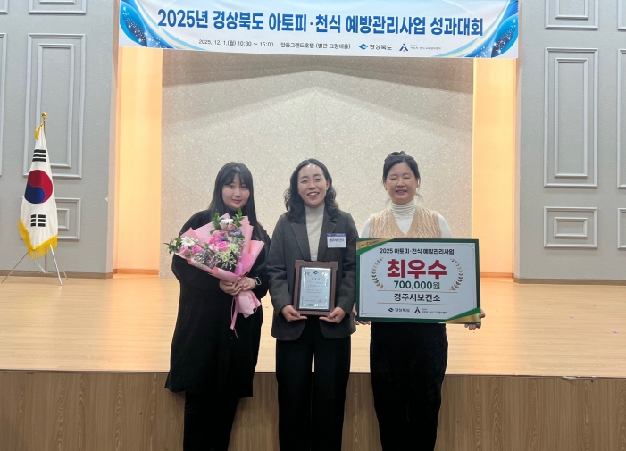 [뉴스노크=김인호 기자] 경주시보건소는 지난 1일 안동 그랜드호텔에서 열린 ‘2025년 경상북도 아토피‧천식 예방관리 사업 성과대회’에서 최우수상을 수상했다.