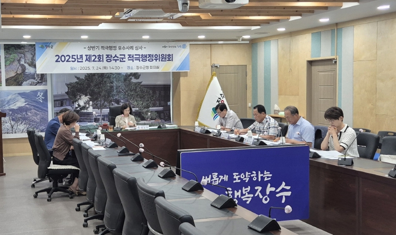 [뉴스노크=김인호 기자] 장수군은 지난 24일 군청 회의실에서 ‘2025년 제2회 장수군 적극행정위원회’를 열고, 2025년 상반기 적극행정 우수사례 3건과 우수공무원 8명을 최종 선정했다고 밝혔다.
