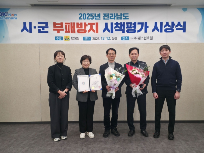 [뉴스노크=김인호 기자] 목포시는 지난 12일 전라남도가 주최한 ‘2025년 시·군 부패방지 시책평가’에서 우수상을 수상했다. 지난해 장려상에 이어 한 단계 상승한 성과로, 2년 연속 우수기관으로 선정됐다.