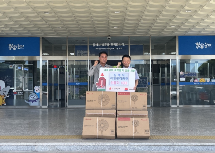[뉴스노크=김인호 기자] 동해시시설관리공단은 7월 23일 오전 11시, 동해시청 복지과에 선풍기 10대를 기탁하고 기탁식을 진행했다. 이번 기부는 여름철 폭염에 대비하여 에너지 취약계층의 건강 보호와 더불어 복지사각지대 해소를 위한 공단의 사회공헌 활동 일환으로 올해 처음 추진된 신규 사업이다.