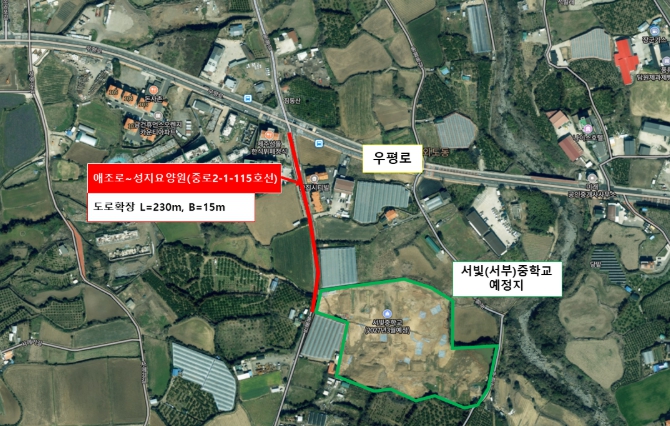 이에 제주시는 총사업비 18억 원을 투입해 해당 구간을 연장 230m, 폭 15m 규모로 확장할 계획이다. 사업은 서빛중학교 개교 예정 시기인 2027년 3월 이전 준공을 목표로 추진한다.