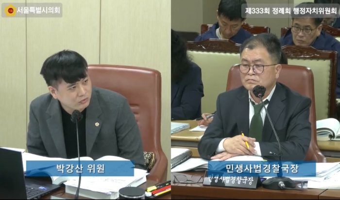 [뉴스노크=김인호 기자] 서울시의회 박강산 의원(더불어민주당 비례대표)은 7일 서울시 민생사법경찰국 대상으로 한 2025년도 행정자치위원회 행정사무감사에서 성과지표가 시민의 체감에 동떨어진 지표로 운영되고 있다며 전면적인 개선을 촉구했다.