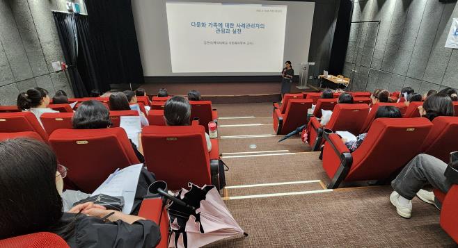 강의는 김연수 백석대학교 사회복지학부 교수가 진행했다. 주요 내용은 △다문화 클라이언트 증가의 사회적 배경 △다문화가족에 대한 사례관리자의 관점 △문화적응과 심리사회적 적응의 관계 △사례관리자의 실천 방향 △사례관리 시 욕구 사정 및 개입 영역 등으로 구성됐다.