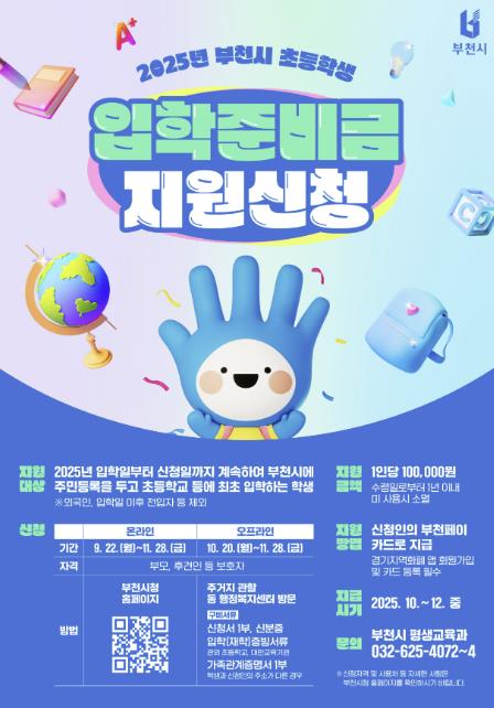 ▲ 2025년 부천시 초등학생 입학준비금 사업 홍보 포스터 |