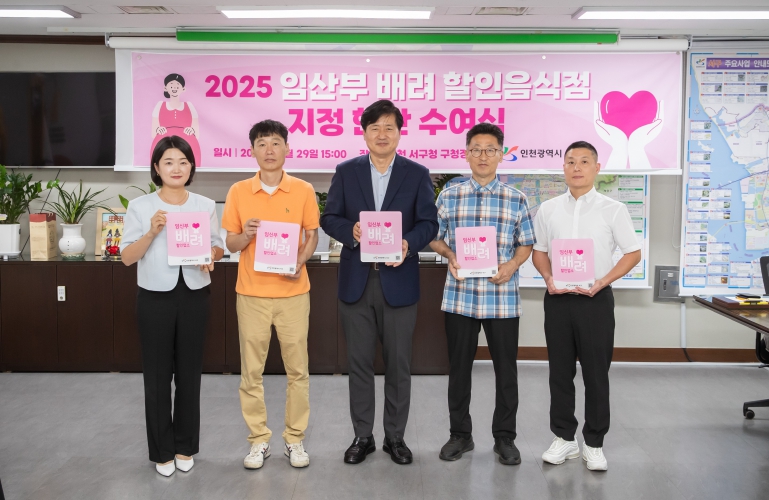 [뉴스노크=김인호 기자] 인천 서구는 지난 29일『2025년 임신부 배려 할인업소』로 선정된 외식업소 일부 4개소에 지정 현판을 전달했다고 31일 밝혔다.