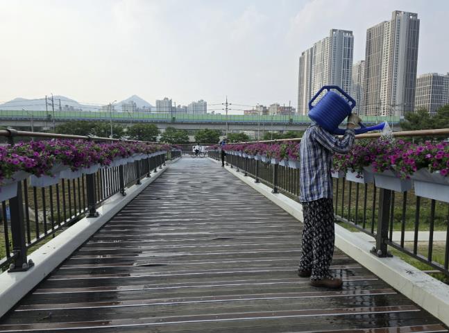 | ▲ 갈매동 매화교 난간 화분 유지·보수, 동구동 경로당 시설 정비사업 등이 진행되었다. |