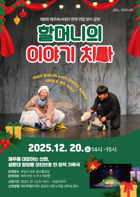 [뉴스노크=김인호 기자] 제주시 우당도서관은 연말을 맞아 12월 20일 오후 2시 연극 ‘할머니의 이야기 치마’ 공연을 개최한다.