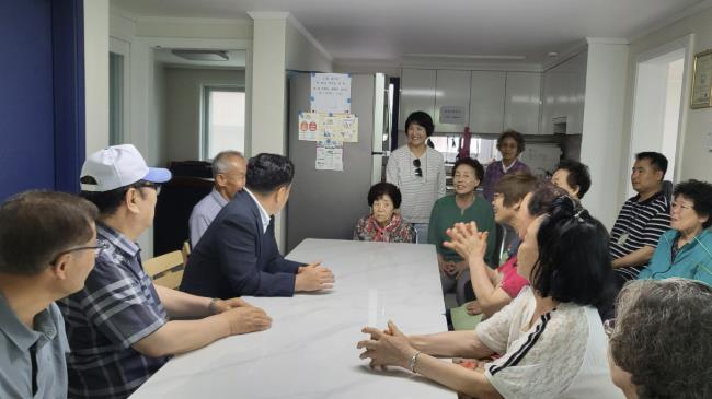 양 동장을 맞이한 어르신들은 환영의 인사를 건네며, 경로당 운영과 관련된 애로사항도 전달하고 적극적인 관심과 지원을 요청했다.