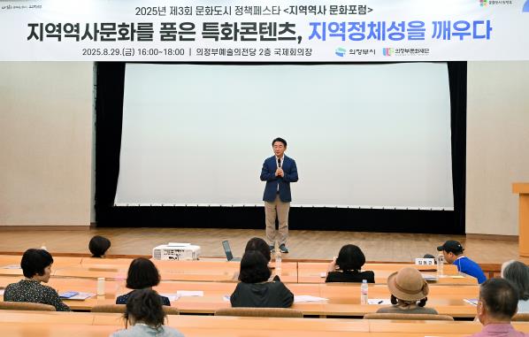 ▲ 김동근 시장이 8월 29일 ‘제3회 문화도시 정책페스타’에 참석해 인사말을 하고 있다. |